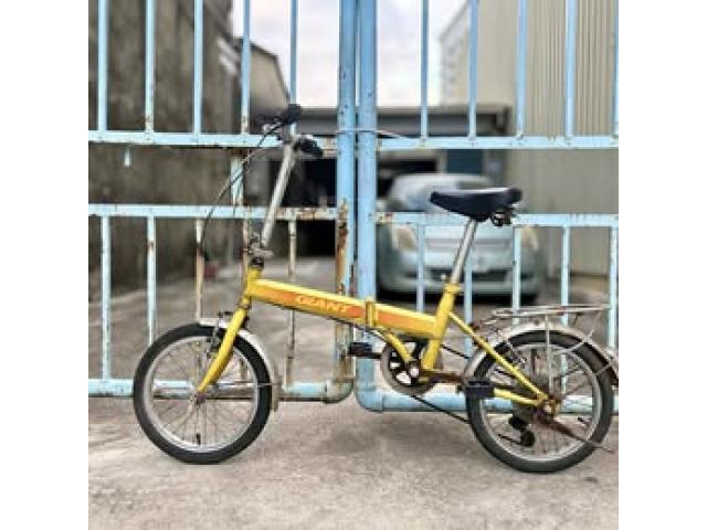 老雕級經典車 捷安特 黃色 GIANT FD-606 16吋折疊腳踏車 全車換全新煞車線及全新變速線 左煞車換全新 前後胎也剛換新不久